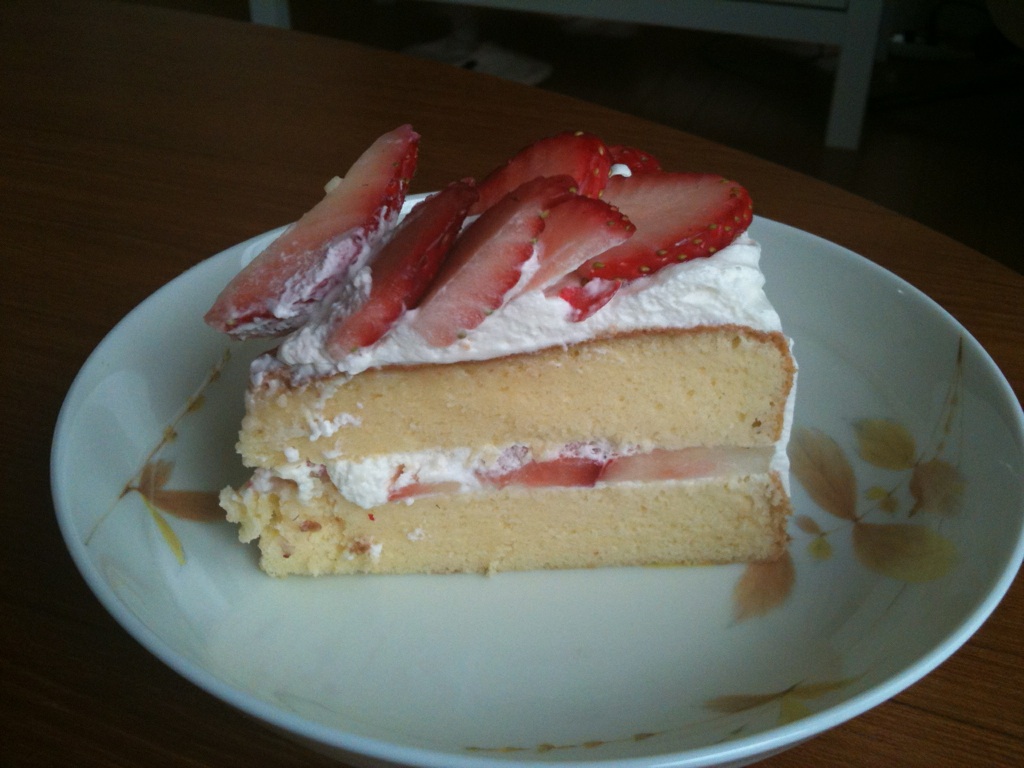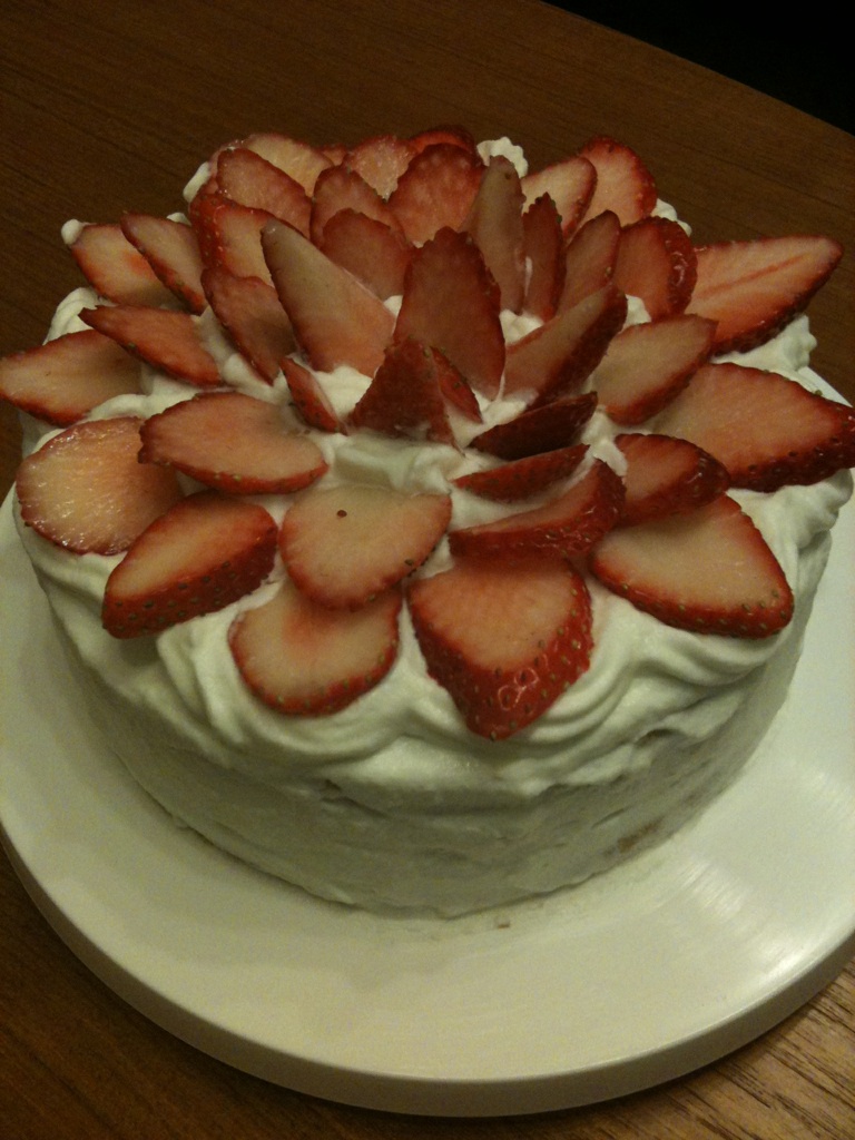 生クリームがゆるくしか作れないものを買ってしまったのでデコレーションには苦労しましたが我ながらなかなかの出来栄え。もう少しふんわりできればもっとよかったけど。